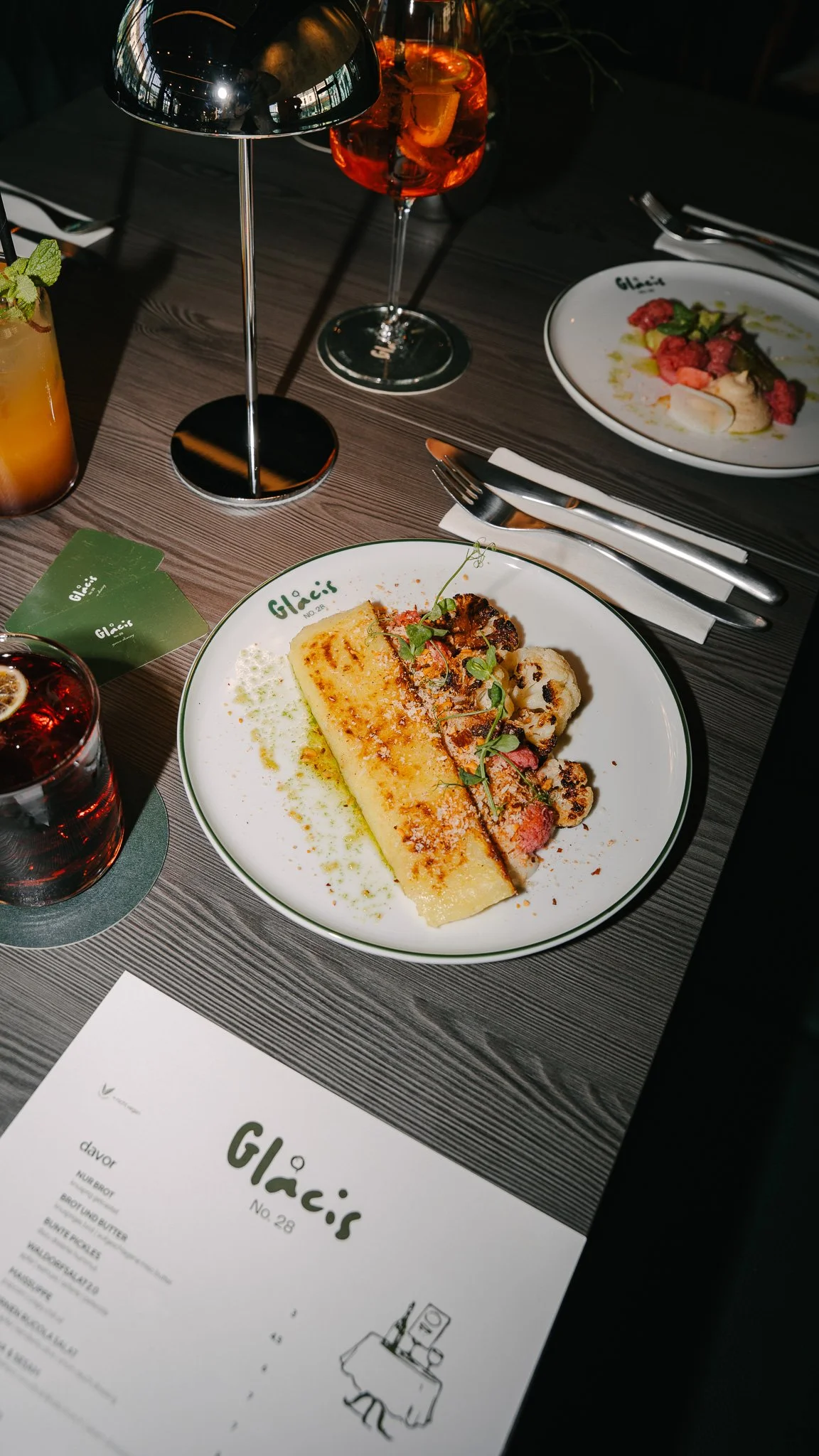 Im Glacis No. 28 steht kreative vegane und vegetarische Küche im Fokus – modern, hochwertig und mit viel Liebe zum Detail. Wir arbeiten bewusst mit regionalen Produkten und ausgewählten Zutaten von Produzent:innen aus der Umgebung.