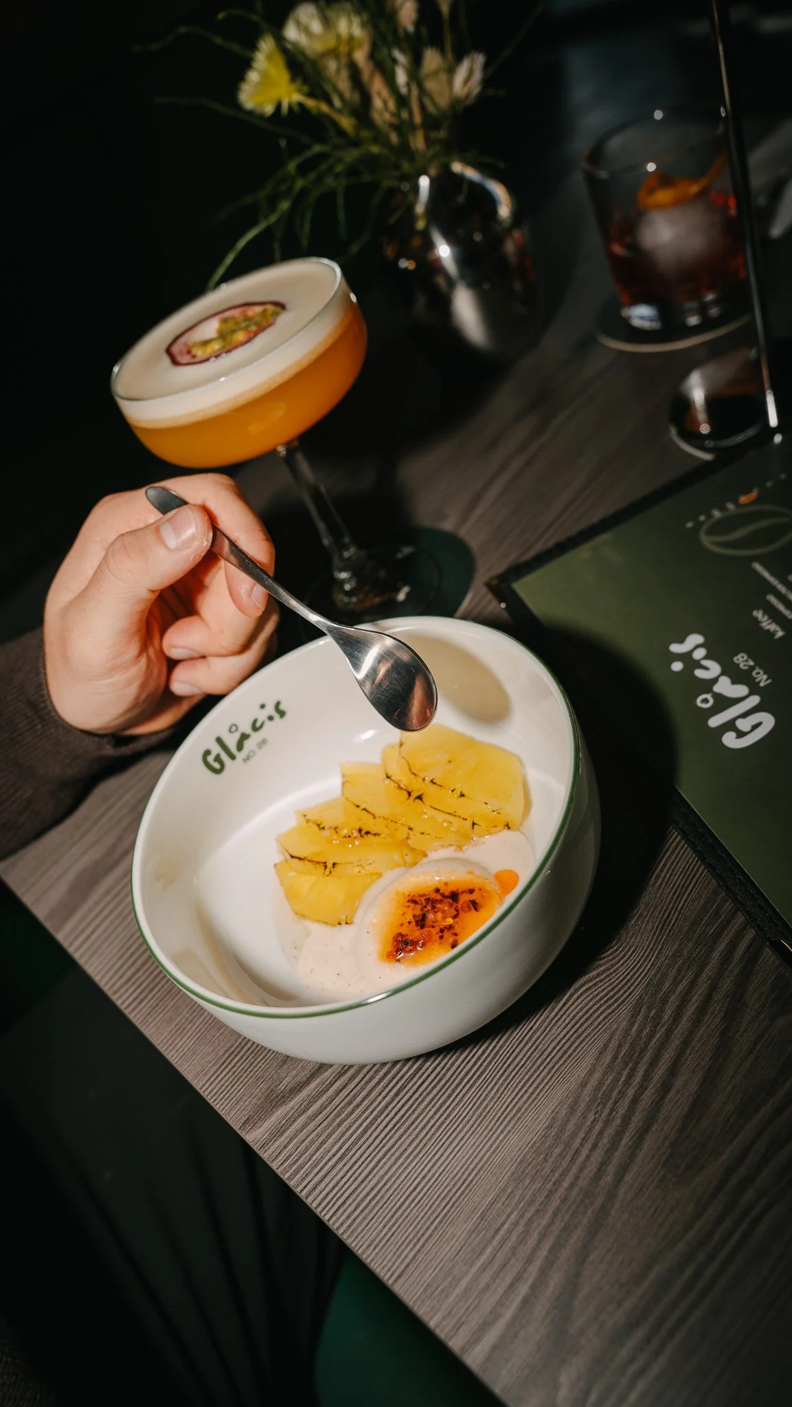 Am Abend verwandelt sich das Glacis No. 28 in eine entspannte Cocktailbar mit modernem Flair. Gedimmtes Licht, klare Linien und eine lockere Atmosphäre schaffen den perfekten Rahmen für einen stilvollen Ausklang des Tages. Freu dich auf hochwertige Longdrinks und klassische Cocktails – vom Espresso Martini über den Pornstar Martini bis hin zum zeitlosen Negroni. Ob für den ersten Drink nach dem Dinner oder einen langen Abend mit Freunden: Unsere Bar lädt zum Verweilen und Genießen ein.